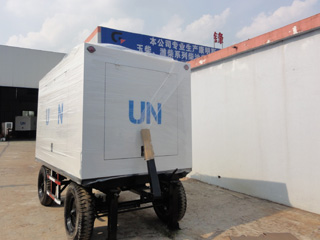 拖車車架采用槽梁焊接成框架結構,節點選擇合理、強度高、剛性好;同時裝有鋼板彈簧懸架結構;拖車采用高度可調節插銷式牽引架,適用于各種高度牽引車;采用圓形鋼管焊接直通式車軸,結構緊湊,安全可靠;車架四角設有機械式支撐裝置,配備慣性行車制動、駐車制動和脫離應急制動,確保機組在各種狀況下的安全;車架前端設有支撐輪,具備承受機組垂直載荷的功能的同時還具備導向功能;整車配備轉向和剎車指示燈,同時裝有尾燈標準插頭。